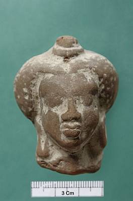 | Description / विवरण | Terracotta head. Hair arranged upwards in honey comb style with a bump in the centre. |