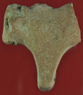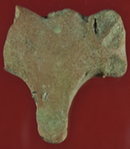 | Description / विवरण | Trench WD 2, dump 1, depth 30-35 cms It s bull head made of terracotta. Back portion is damaged and fore legs are conjoined. Horns and snout is damaged. |