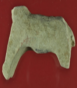 | Description / विवरण | Trench WG 3, section scraping It s an animal figurine made of terracotta. Head and hind legs are damaged. Fore legs are conjoined and tail is broken. |