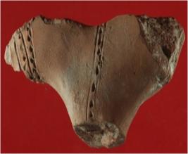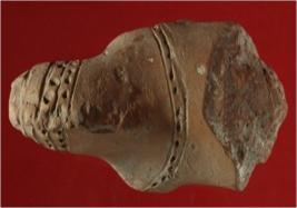 | Description / विवरण | Trench XAX 19, Qdt 1, layer 3, depth 175-190 cm It is an animal figurine made of terracotta. Dotted design is done on the body. Face is lost and all legs are broken. Appearance is brick brown. |