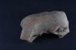 Animal figurine has elongated body, head is missing and legs and tail are broken.