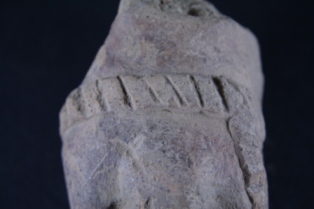 Fragment of animal figurine, body is damaged, it is enclosed by a belt or a band.