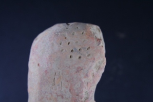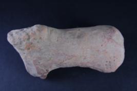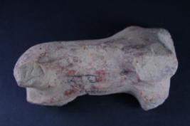 Animal figurine has small pin holes on its surface, head is missing and legs are broken.