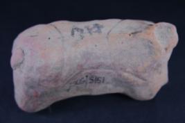 Animal figurine is without head, a geometrical figure is incised on its surface.