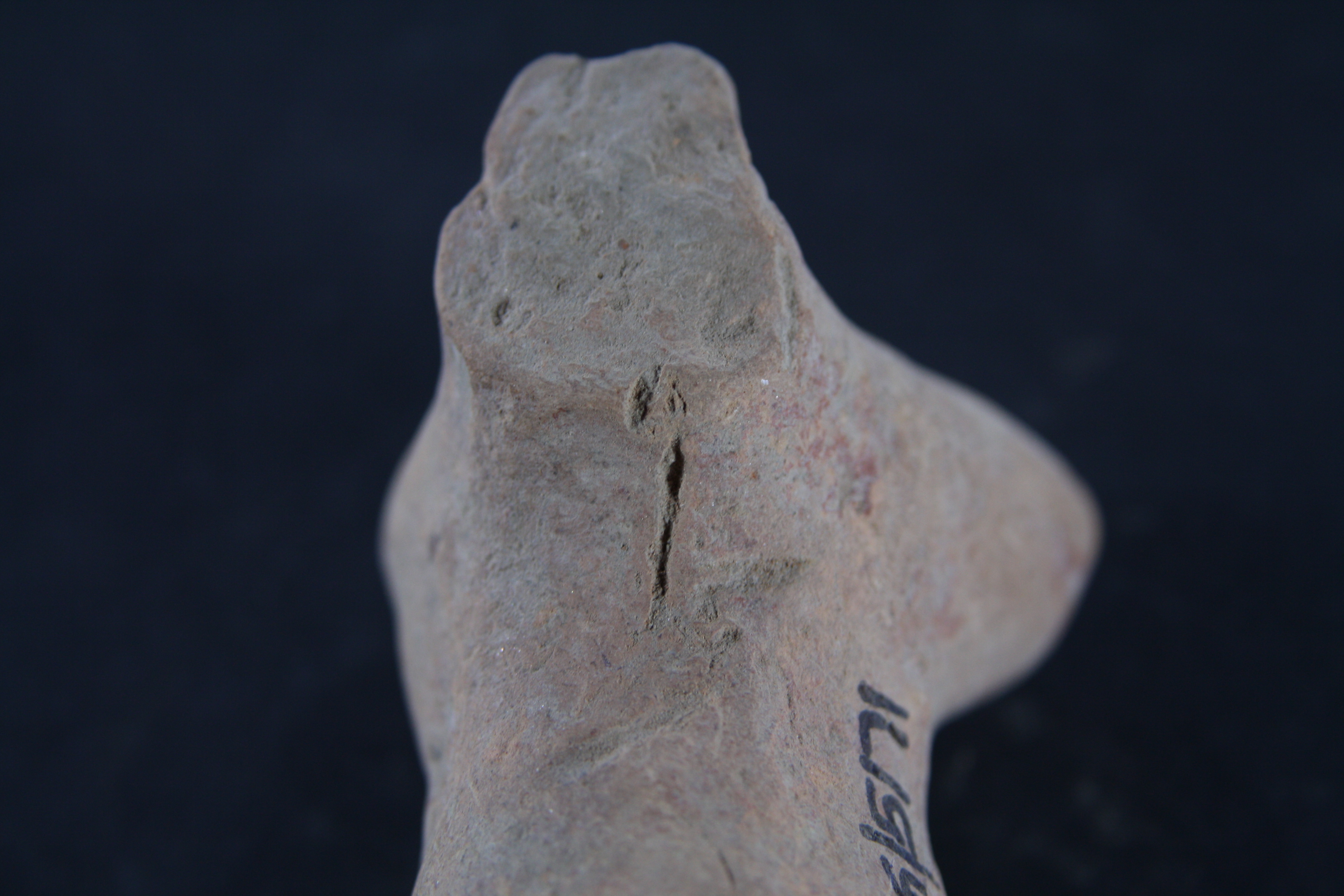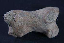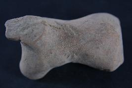 Animal figurine without head, curved from below and legs are damaged.