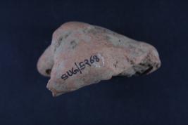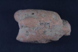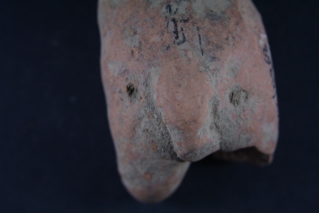 Animal figurine has front half of its body missing, its surface is damaged.