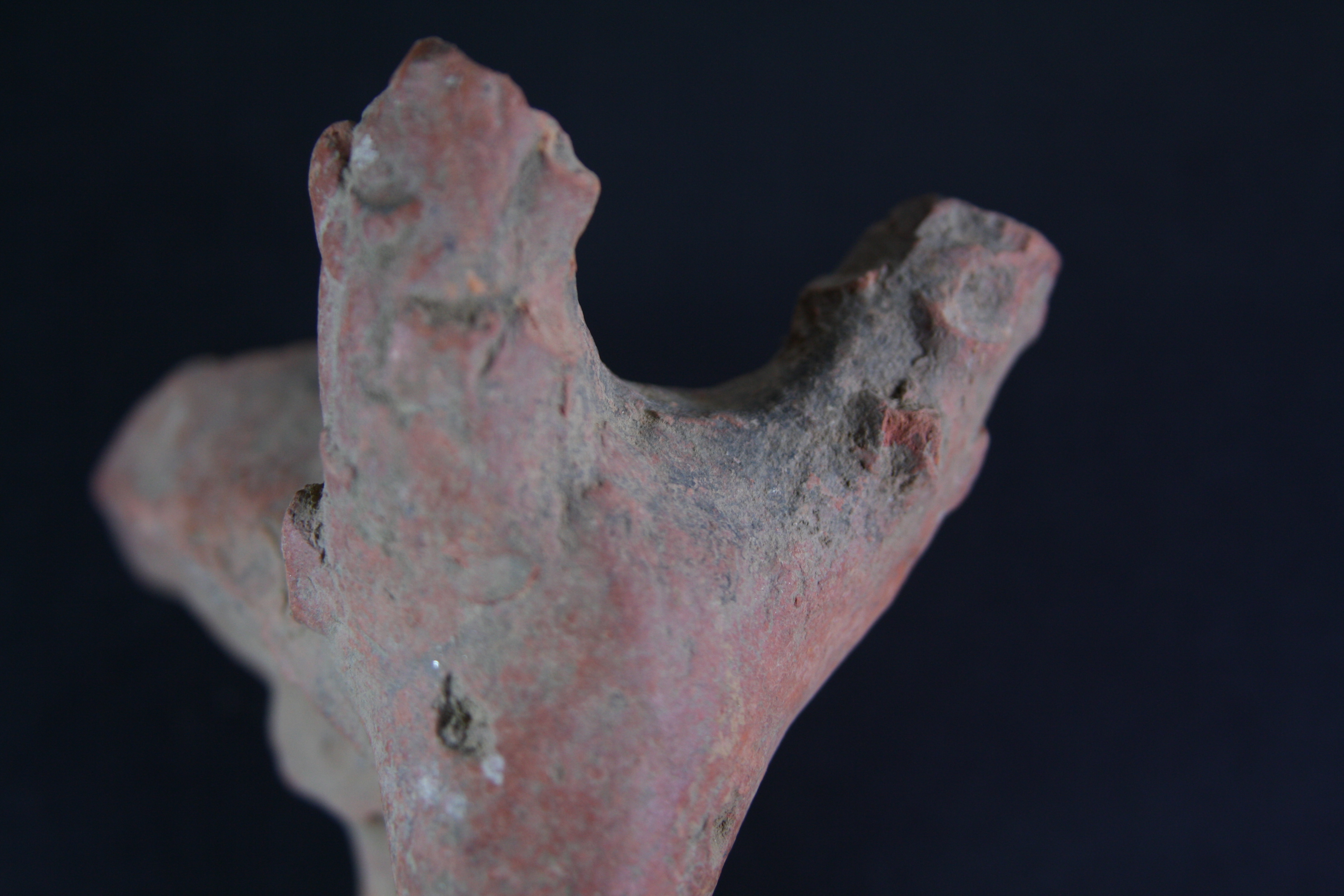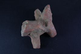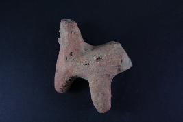 Broken animal figurine, face and legs are damaged. Ears are turned upwards.