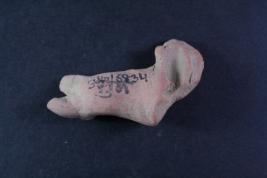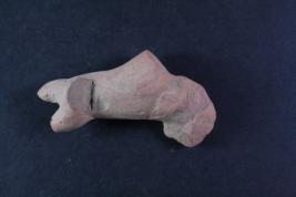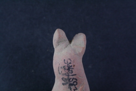 Animal figurine is damaged, front portion is lost, only ears can be identified.