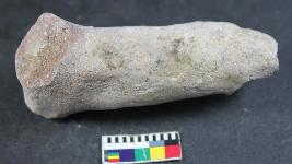 | Description / विवरण | A headless animal figurine with elongated body and broken legs. Its colour is dull red and rough surface. |