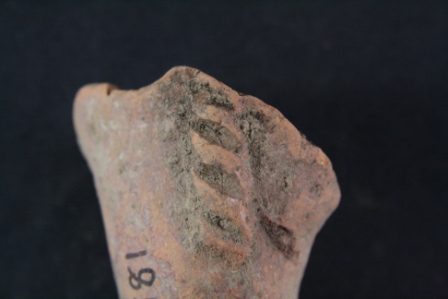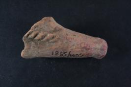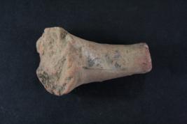 Damaged from upper side. on the leg found a tail decoration. Surface is rough and flaked.