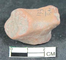 | Description / विवरण | Fragment of an unidentified animal figurine having smooth surface. Colour is Red. |