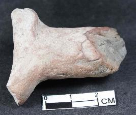| Description / विवरण | Head of probably Bull figurine with prominent broken horns and snout having rough surface. It is red in colour. |