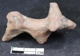 | Description / विवरण | Animal figurine is looks like dog figurine with slit mouth, and two prominent ears,its eyes are pinched out, having separate legs, front two legs are broken, its has a applique leg twisted down, red in colour |