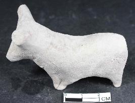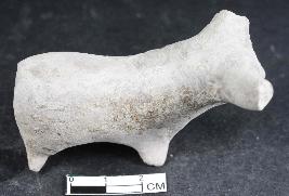 | Description / विवरण | Animal figuine with prominent mouth, having thick body, one horn is broken from the head and another one is going up and broken from the tip, tail is broken, dull red in colour, separate legs, rough surface. |