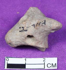 | Description / विवरण | Damaged animal head has prominent snout and broken horn. It is of dull red colour. |