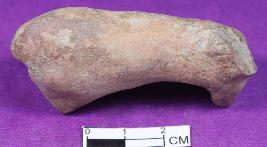 | Description / विवरण | A fragment of unidentified animal figurine with broken thick legs , tail and face with smooth surface . It is dull red in color. |