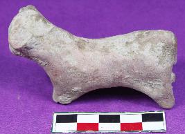 | Description / विवरण | A fragment of bull figurine with broken snout, humped ,front legs and tail ,while back legs are intact and small with smooth surface . It is dull red in color. |