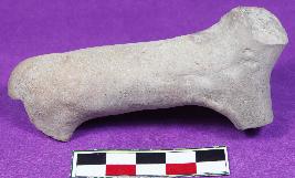 | Description / विवरण | A fragment of unidentified animal figurine with broken legs ,face and tail. It has elongated body and smooth surface. It is dull red in color. |