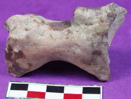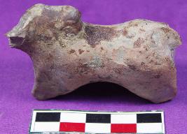| Description / विवरण | A fragment of unidentified animal figurine with outstretched legs ,broken tail and face .It has hump made by pinching its surface.It has smooth surface and is dull red in color. |