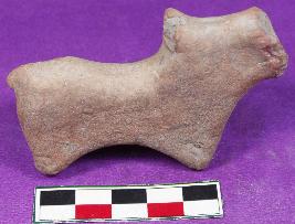 | Description / विवरण | A humped bull figurine with broken tail , face and joint legs. It has smooth surface and is red in color. |