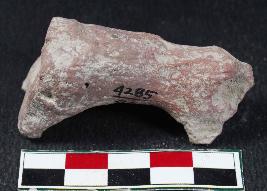 | Description / विवरण | Fragmentary animal figurine with prominent separated back legs. Its dull red in colour. |