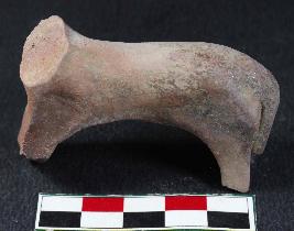 | Description / विवरण | A small-sized animal figurine with prominent outstretched legs and long pointed tail. Its dull red in colour. |