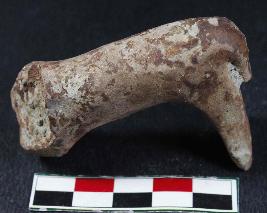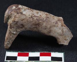 | Description / विवरण | A small-sized animal figurine with prominent outstretched back legs and tail. Its dull red in colour. |