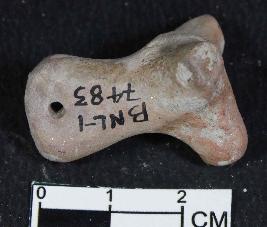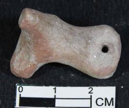 | Description / विवरण | A fragment of unidentified animal figurine broken snout and horns. It has pinhole on neck and smooth surface. It is dull red in color. |