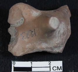 | Description / विवरण | Fragmented head of an animal figurine with broken snout, prominent horns and hump and eyes are marked by incised lines having rough surface. It is Red in colour. |