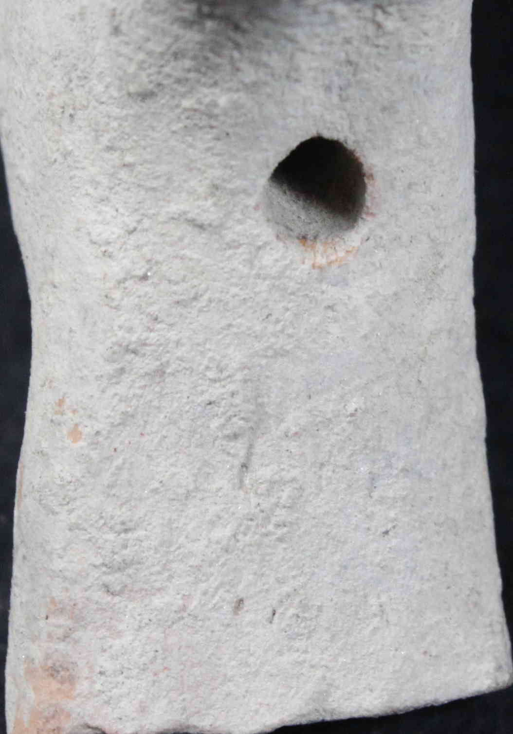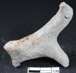 A fragment of unidentified animal figurine with broken face and outsteched legs. It is grey in colour.
