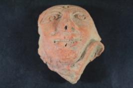 | Description / विवरण | It s a human face made by terracotta. Colour is ochred and not well fired. Its bottom portion is lost. Features are not clearly visible and rubbing on the surface. |