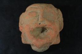 | Description / विवरण | It is a human face made of terracotta. Colour is red & not well fired. Features are not clearly visible & right eye, bottom portion are lost. Rubbing on the surface. |