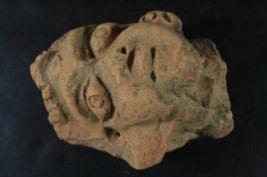 | Description / विवरण | It is a human face made of terracotta. Colour is ochred & not well fired. Wearing crown, kundla & incise lines on it. Features are clearly visible & bottom portion is lost. Rubbing on the surface. |