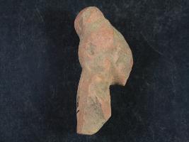 | Description / विवरण | It s a human face made by terracotta. Colour is ochred and not well fired. Facial features are not clearly visible and bottom portion is lost. Wearing a crown and face are damaged. Rubbing on the surface. |