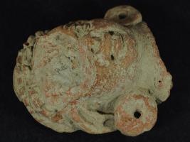 | Description / विवरण | It s a female face made of terracotta and not well fired. Colour is red and black. Face has been badly mutilated, braided hair and wearing kundla. Rubbing on the surface. |