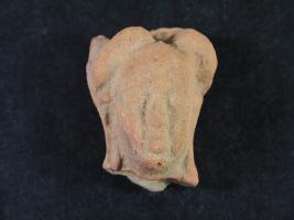 | Description / विवरण | It is a human face made of terracotta and colour is ochred. It is wearing kundla and braided hair. It s bottom portion is lost & rubbing on the surface. |