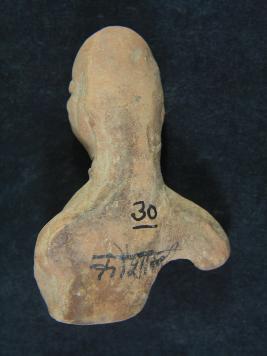 | Description / विवरण | It s a human figurine made by terracotta and not well fired. Its colour is ochred. Wearing a necklace and bottom portion is lost. Hand are damaged. Rubbing on the surface. |