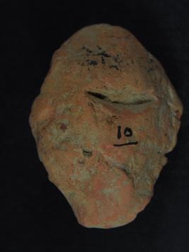 | Description / विवरण | It s a human face made by terracotta and not well fired. Colour is ochred and features are not clearly visible. Its bottom portion is lost. Rubbing on the surface. |