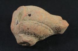 | Description / विवरण | It is an animal face made of terracotta. Colour is red & well fired. Face is well decorated & back portion is lost. Rubbing on the surface. |
