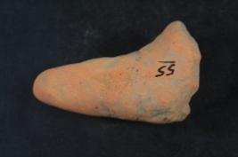 | Description / विवरण | It s an animal leg made of terracotta. Colour is ochred and not well fired. Upper porton is lost. Well decorated and rubbing on the surface. |