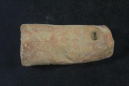 | Description / विवरण | It s an animal leg made of terracotta. Colour is ochred and not well fired. Upper portion is lost and a hole on it. Well decorated and rubbing on the surface. |