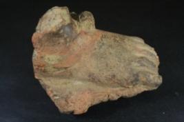 | Description / विवरण | It s human feet made of terracotta. Colour is red and well fired. It is decorated with incise lines. Fingers are shown with incise lines. |