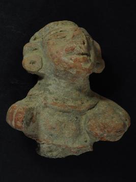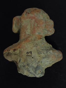 | Description / विवरण | It is a human figurine made of terracotta. Colour is ochred & not well fired. It is wearing crown, kundla, garland & bottom portion is broken. Rubbing on the surface. |