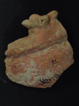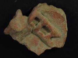 | Description / विवरण | It is an animal figurine made of terracotta. Colour is ochred & not well fired. Back portion is broken & checked design on it. Rubbing on the surface. |