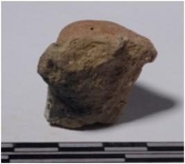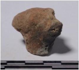 | Description / विवरण | A fragment of a terracotta animal figurine showing head with slit mouth and horn, long neck broken other part. |