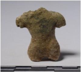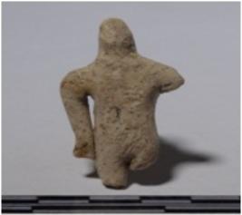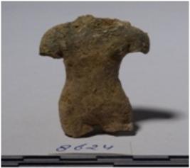 | Description / विवरण | A fragmentry part of a human figurine showing no feature on face, short neck, one hand and lower portion broken. |