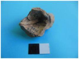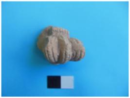 | Description / विवरण | Fragment of a human head. Probably the protuberant part of the center head dress. |