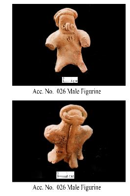 | Description / विवरण | A male figurine of red fabric crudelly modelled by hand. It wears a turban on the head, eyes are made by piercing hole, in orbits on both side of the ridged nose and mouth by an incision. Its hand and legs are broken. Three incised stokes on the chest. A thick horizontal incision separate the head from the trunk. Hand made technique has been used. |