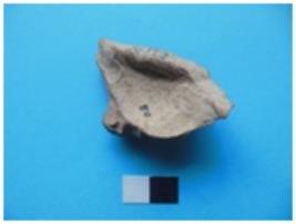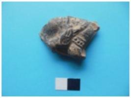 | Description / विवरण | Fragment of figurine . Probably a human figurine with the Chennavira mark on the body. Black slip has been given on outer surface. |