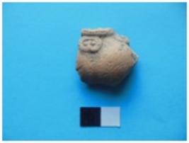 | Description / विवरण | Fragmentary left chest of a female figurine with a part of the necklace with two circular pendants. Red in colour. |